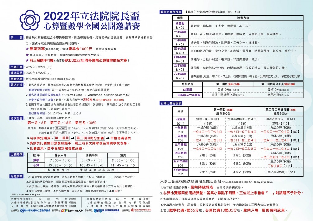 2022年立法院院長盃心算暨數學全國公開邀請賽