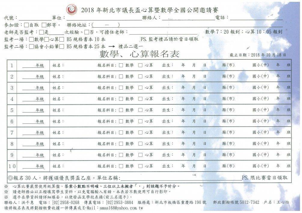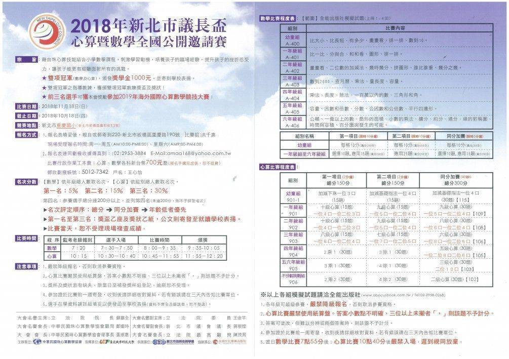 2018年新北市議長盃心算暨數學全國公開邀請賽