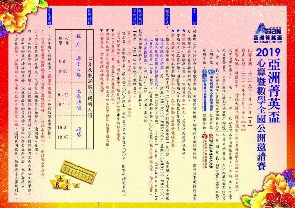 2019年亞洲菁英盃心算暨數學全國公開邀請賽