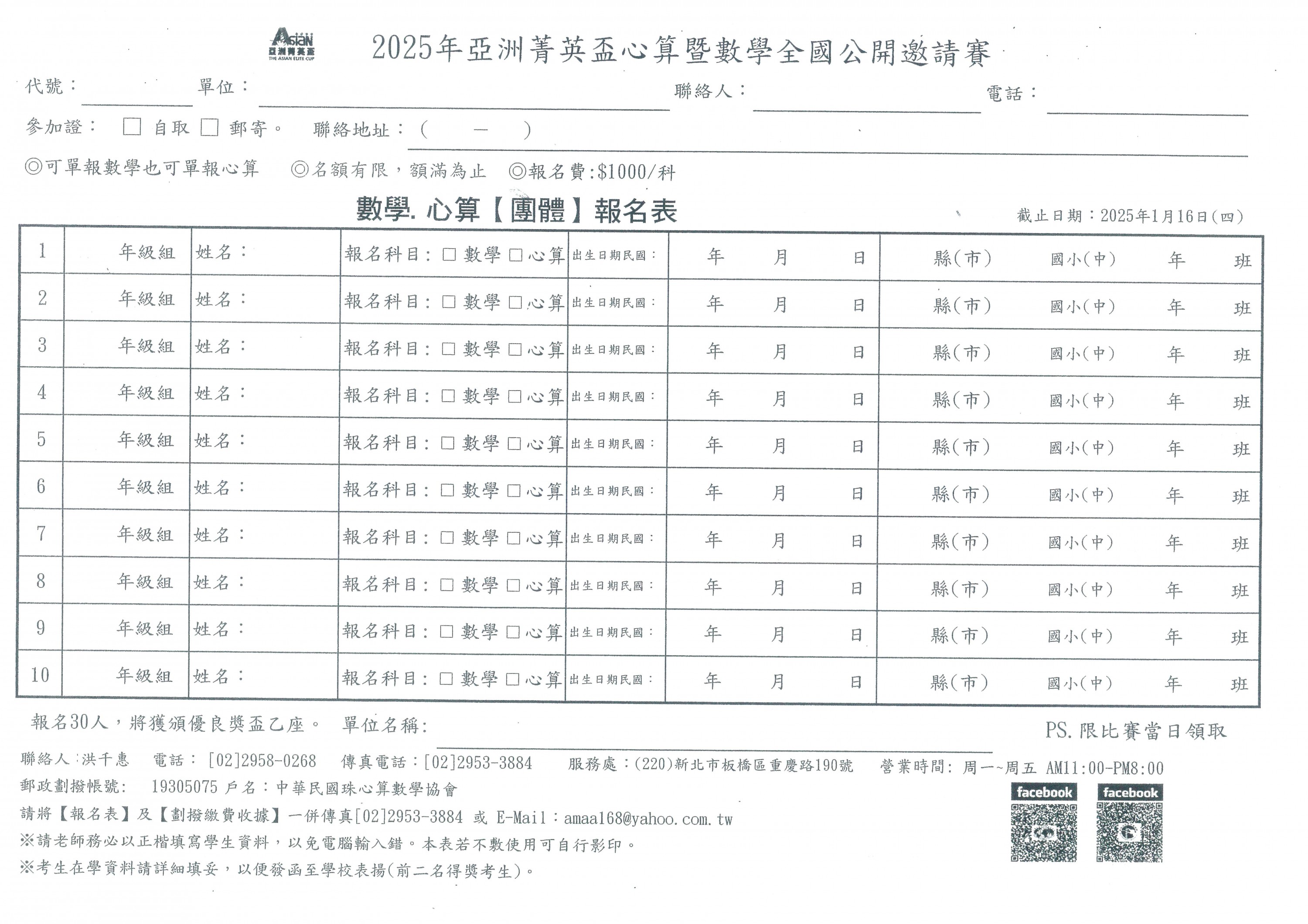 2025年 亞洲菁英盃心算暨數學全國公開邀請賽